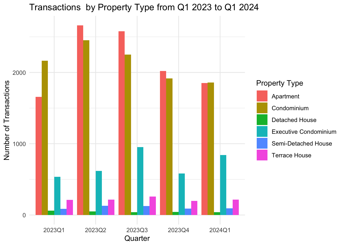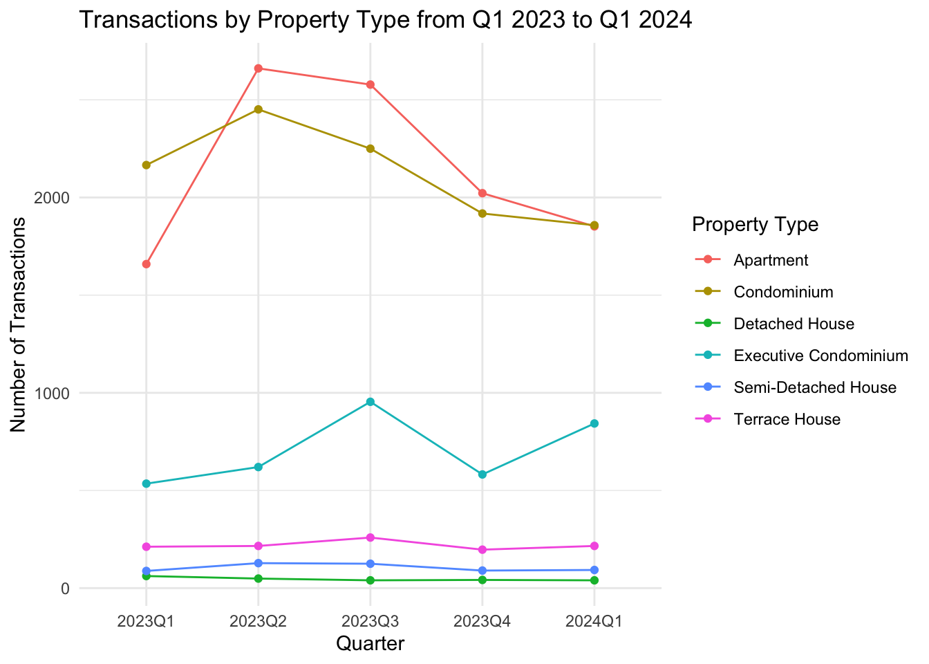 labs(title = "Transactions by Property Type from Q1 2023 to Q1 2024",
